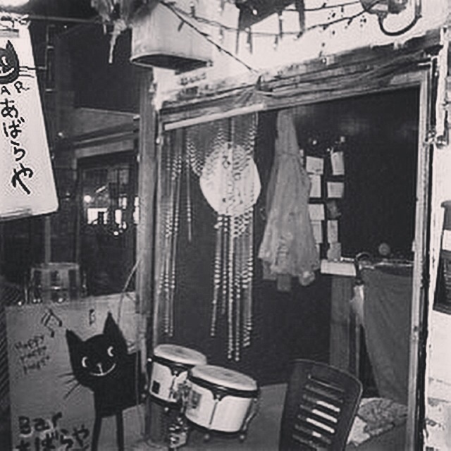 その名も「カラスinあばら屋」という身も蓋もない屋号にたがわず、ほんとに入り口すらない店内オープンテラスなBARは、お客さんも道ゆく人も袖振り合う、楽しいBARでした。
