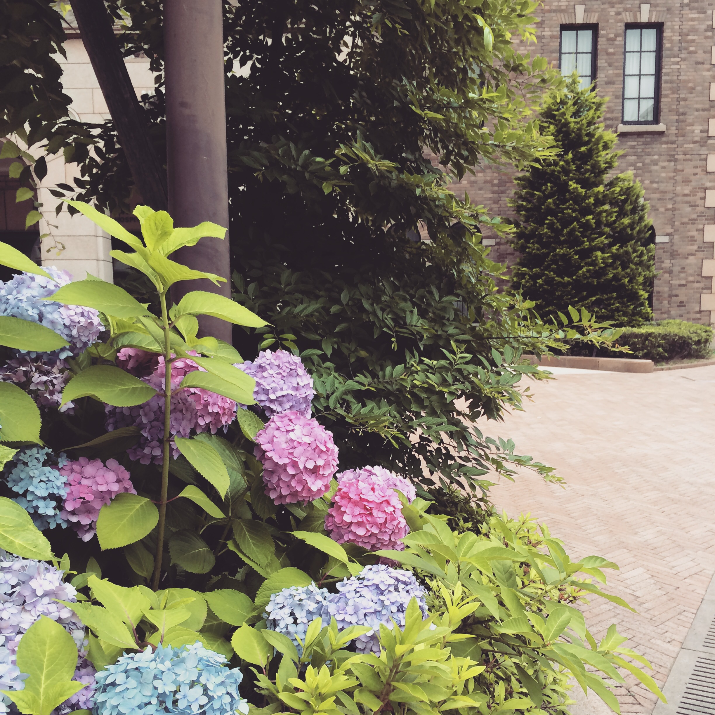 済生会中津病院の玄関先の紫陽花がとても綺麗に咲いており、思わず足を止めました。